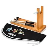 - [DIMENSIONES]Base jamon: 42 cm Largo (para jamones y paletillas) x 16 cm Ancho; Grosor base jamonero: 2.2 cm - Altura del soporte jamon: 27 cm. Cuchillo Jamonero en Acero Inoxidable con Alveólos de...