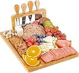 - ALTA CALIDAD - este juego de tabla para quesos hecha de madera de bambú 100% original incluye 4 cuchillos para queso.